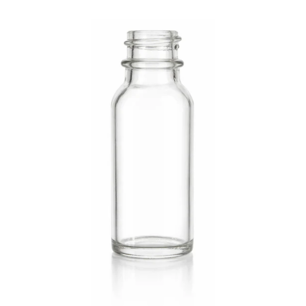 1/2 ounce (15 mL) clear glass boston round bottle with 18-400 neck finish. Boston round bottles have the distinct rounded shoulders design that makes it popular in many industries. Glass is a great option for products that do not fit with plastic containers for packaging reasons. These boston rounds are available in cobalt blue, amber, frosted, clear and white colors. Smaller boston round bottles are available as droppers that include child-resistant dropper caps. Perfetc. for essential oils and other personal care products. Remember to test your product with the specific container to assure the corretc. fit and compatibility.