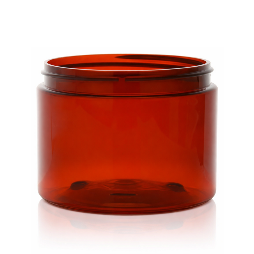 Store your products with confidence in this 16 oz amber PET jar, designed to protect light-sensitive contents from UV damage. The straight-sided construction maximizes interior space while maintaining a professional appearance on shelves. Compatible with standard 89-400 closure sizes, this durable plastic jar resists impact and offers excellent clarity for product visibility. Ideal for cosmetics, supplements, food items, and more, it combines practical functionality with reliable protection for your brand.