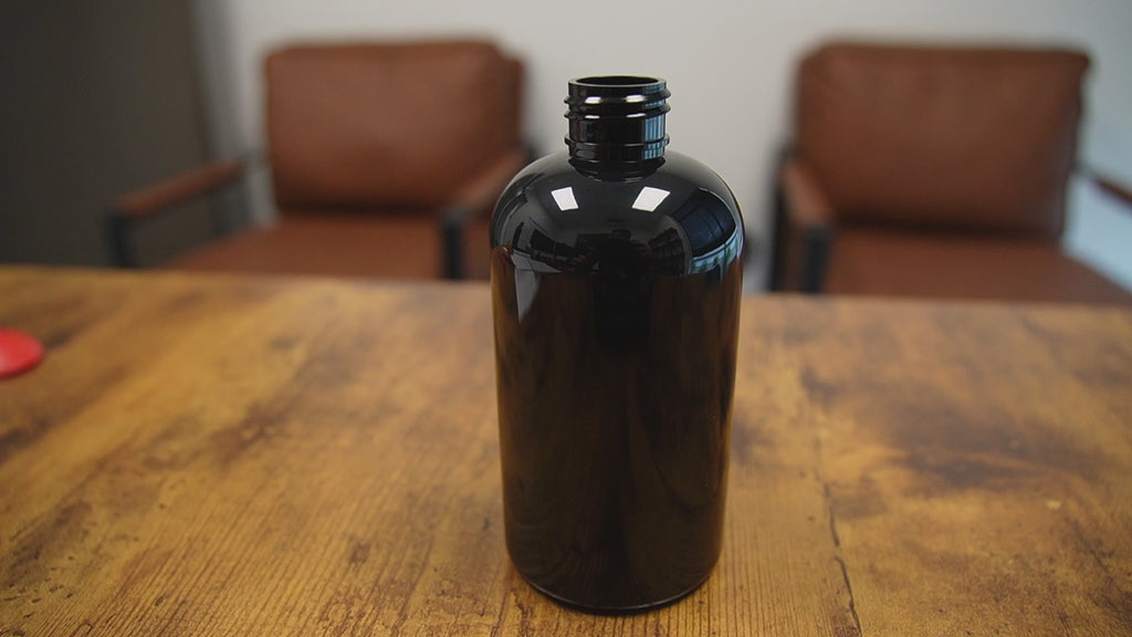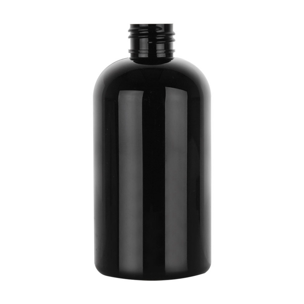 Introducing our 8 oz Black 24-410 Boston Round PET Plastic Bottle - your perfect solution for storing and dispensing your products! Its sleek design and durable PET plastic material make it both functional and aesthetically pleasing. Say goodbye to messy spills and hello to organized storage with this bottle.